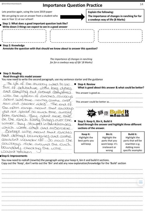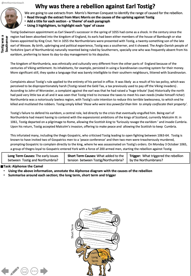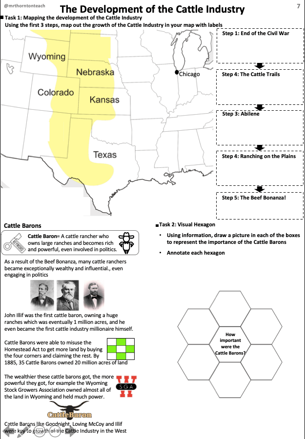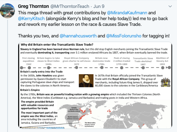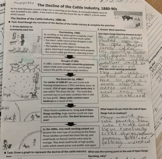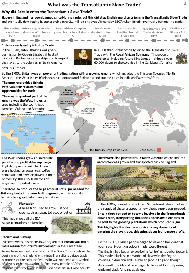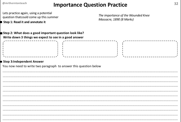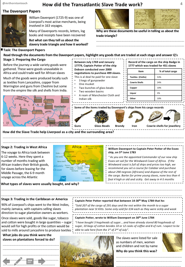 Strong teacher subject knowledge is essential to excellent teaching, and creating these booklets means that I know the content inside-out, and I understands all the hardest parts and misconceptions, which I can plan for. (Obviously this changes class by class, but there are common ones we see on a yearly basis. If I don’t know something, I can ask my team or the great history community on twitter, and my questions will be answered and I can make any amends. This happened most recently during my planning of the Slave Trade unit, which I have since gone back and replanned for nex year