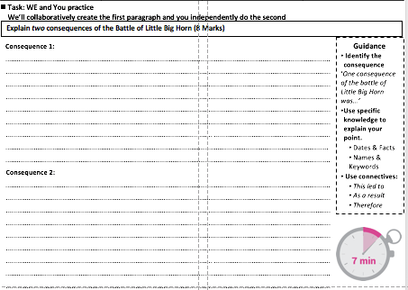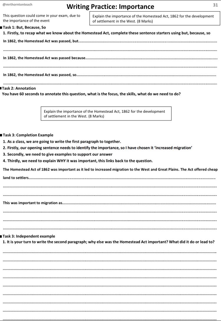 This idea of “use the notes, don’t do the notes” would allow us to spend more time practicing, applying and discussing the history. Moreover, with a class who would struggle with such heavy note making, I wanted to focus our valuable time on practicing writing, and not just copying from the board.