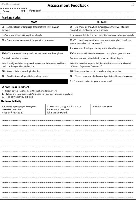 Students have an exercise book complimenting their booklet to do any feedback work in.
