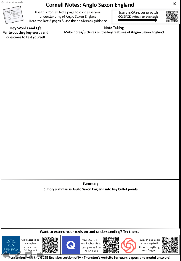 I’m also keen for students to review their learning, so I include Cornell Note pages to summarise parts of topics, I will admit…I don’t like them, but I appreciate the benefits of using them.