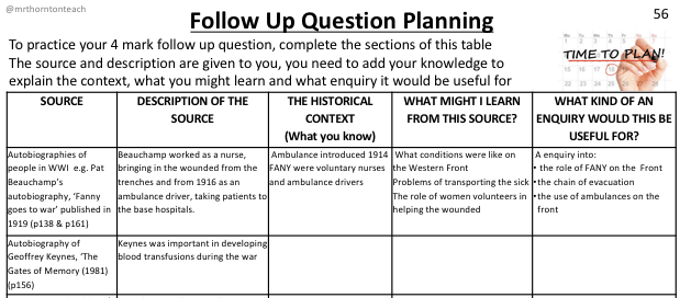 In the last year I’ve also trialled using them for evidential work in history, for example for making inferences and source analysis. Thanks to Paula Lobworth (@PaulaLoboWorth) for the idea for this.