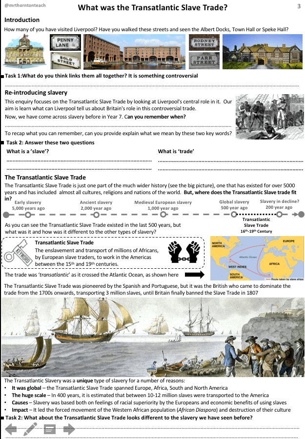 I’d say that using booklets has allowed my teaching to become more knowledge rich, as by honing do. The below is an example of our current Y7 unit on Liverpool and the Transatlantic Slave Trade, its deeper and more challenging than we’ve ever gone before.