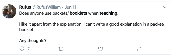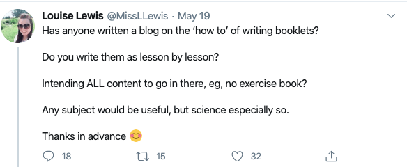 Since the profession moved to remote learning in Spring there has been a notable increase in the discussions about booklets or workbooks on Twitter, with queries about their use, design and research around their benefits.