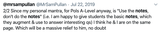 I was also struck by a tweet by @MrSamPullan, which chimed with the extensive notemaking lessons we do at GCSE.