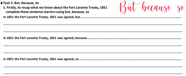I’ve also included some of the bits that I’ve learnt from the Writing Revolution such as But, Because, So, but this is a future task, especially on building sentences.