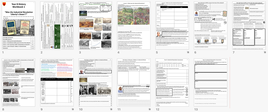 This is my edit of the Liberty’s Dawn workbook created for our Industrial Revolution unit. My colleague Catherine kindly made the original using a number of resources from (Rachel Ball, Hannah Cusworth & Elizabeth Carr) and I’ve turned it into a workbook for our LAP Y8 classes.